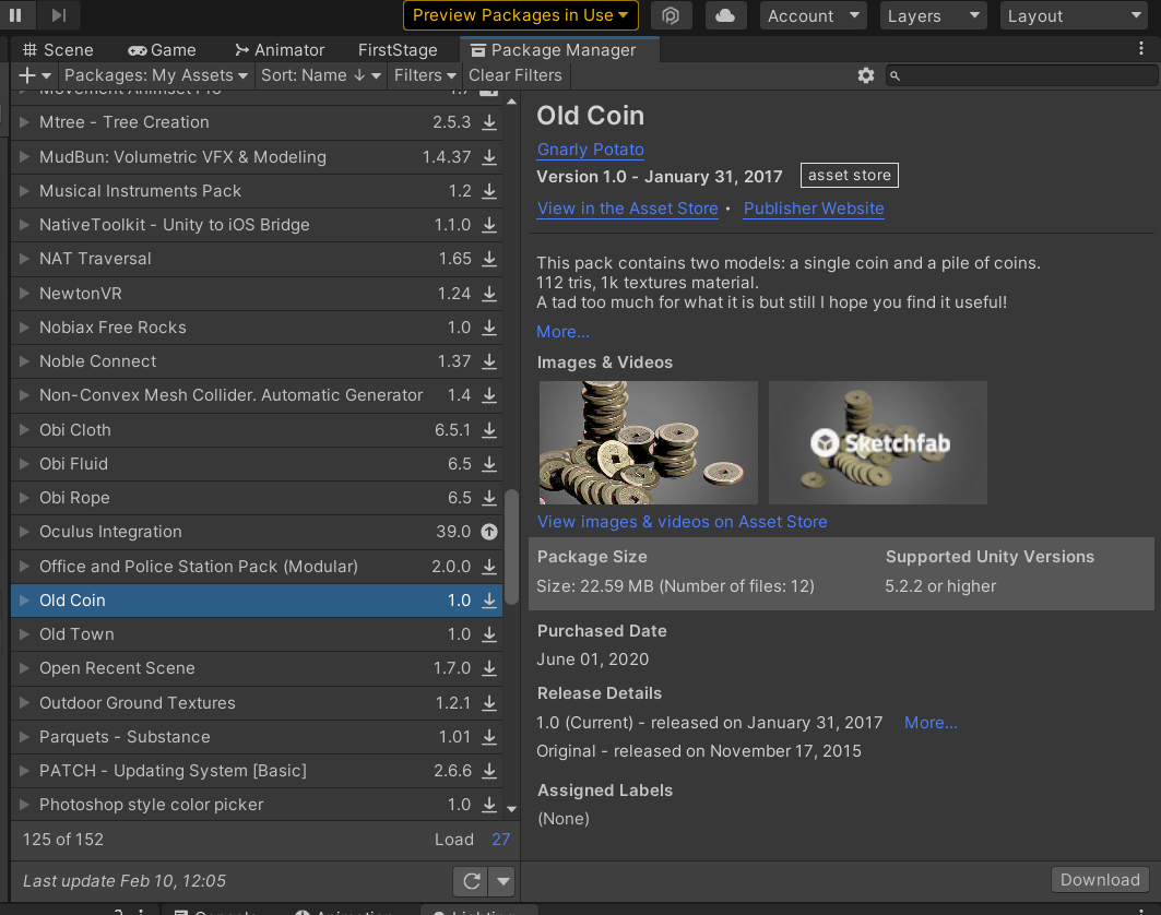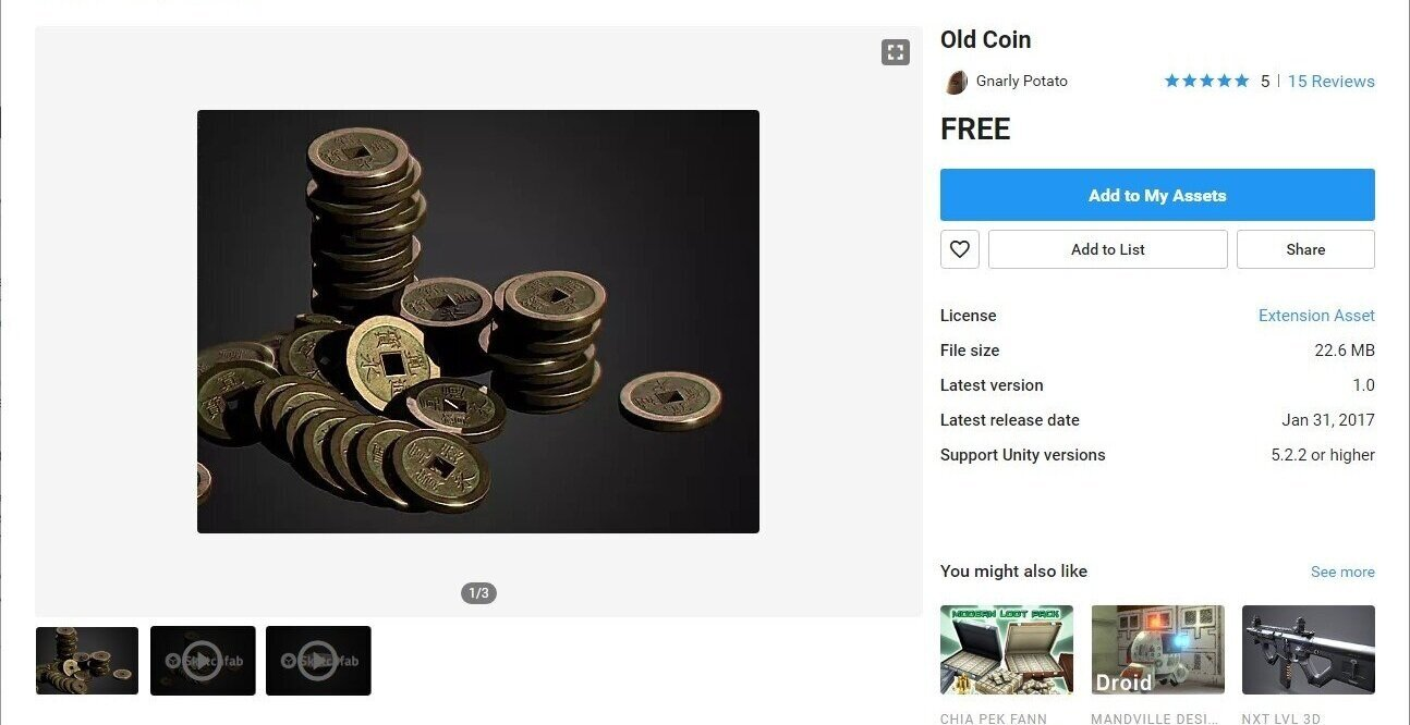 To help illustrate this process, we have used the free [Old Coin](https://assetstore.unity.com/packages/3d/props/old-coin-49530) asset in the Unity Asset Store.
