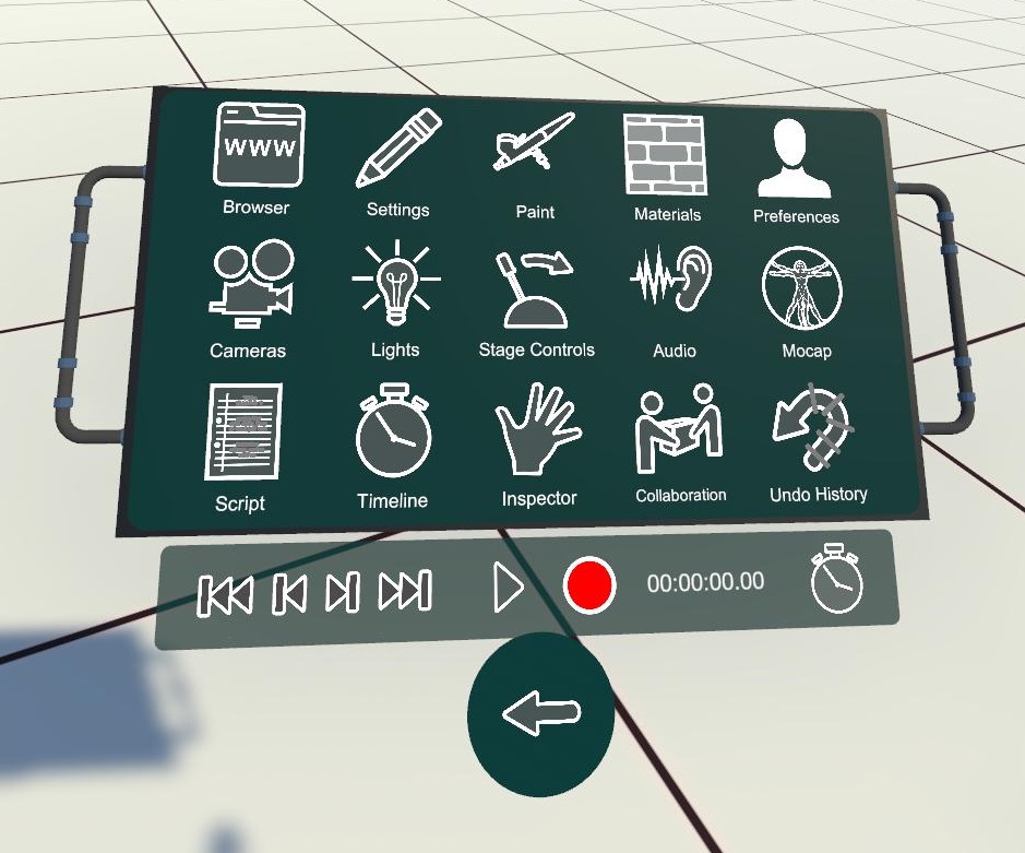 <table><thead><tr><th width="247">Screen</th><th>Description</th></tr></thead><tbody><tr><td><strong>Browser</strong></td><td>Web Browser showing this documentation by default.</td></tr><tr><td><strong>Settings</strong></td><td>Settings for sketching, snap, et al.</td></tr><tr><td><strong>Paint</strong></td><td>Paint color &#x26; brush palette</td></tr><tr><td><strong>Materials</strong></td><td>Materials palette for the Paint Roller</td></tr><tr><td><strong>Preferences</strong></td><td>Your working preferences</td></tr><tr><td><a href="../camerawork/cameras"><strong>Cameras</strong></a></td><td>Monitor the available cameras</td></tr><tr><td><strong>Lights</strong></td><td>Lighting controls</td></tr><tr><td><strong>Stage Controls</strong></td><td>Controls for stage machinery</td></tr><tr><td><strong>Sound</strong></td><td>Sound mixing desk</td></tr><tr><td><strong>Mocap</strong></td><td>Assign motion capture sources</td></tr><tr><td><a href="working-with-time/script"><strong>Script</strong></a></td><td>Work with the script view</td></tr><tr><td><a href="working-with-time/timeline"><strong>Timeline</strong></a></td><td>Work with the timeline view</td></tr><tr><td><a href="working-with-things/inspector"><strong>Inspector</strong></a></td><td>Inspect and modify the properties of things</td></tr><tr><td><strong>Collaboration</strong></td><td>Team collaboration</td></tr><tr><td><a href="undo-redo"><strong>Undo History</strong></a></td><td>Rewind the Undo History</td></tr></tbody></table>